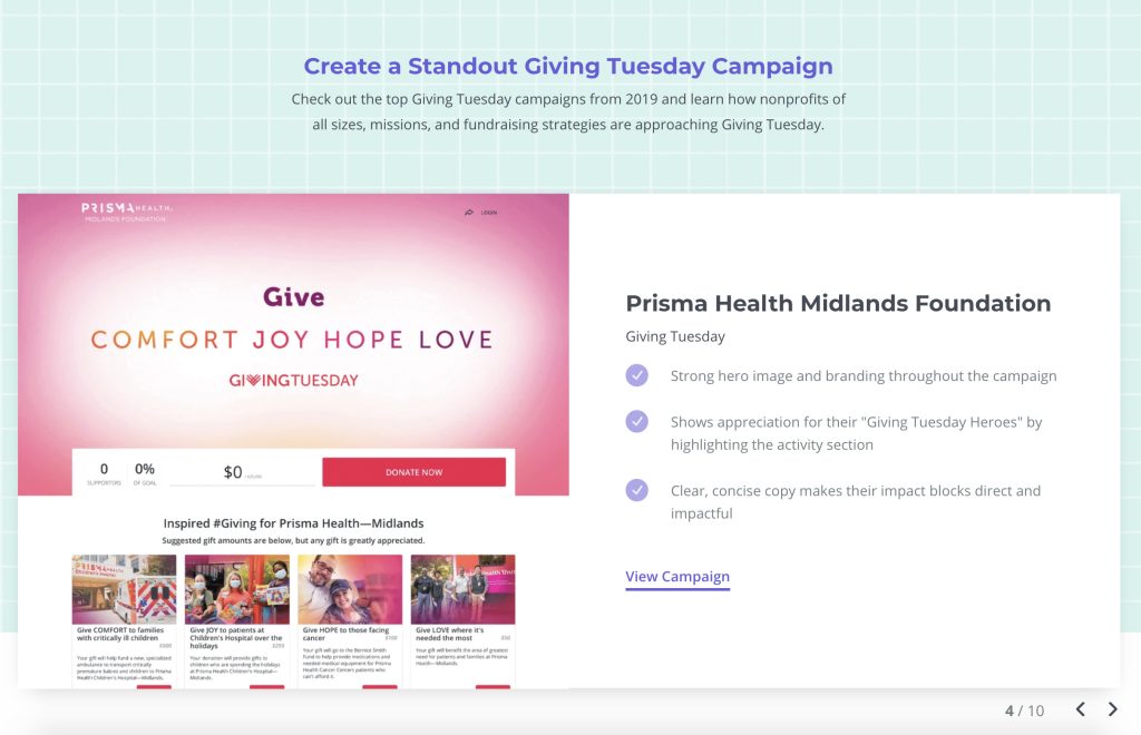 - Named a Top 10 Standout GivingTuesday campaign in 2019 by Classy, an online fundraising platform